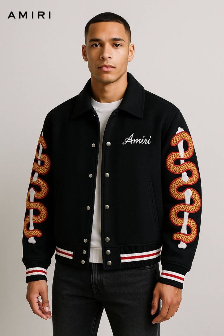 Amir_i Sleeve Snake Embroidered Patch Exclusive Wool Fabric Jacket Black (DN 615)