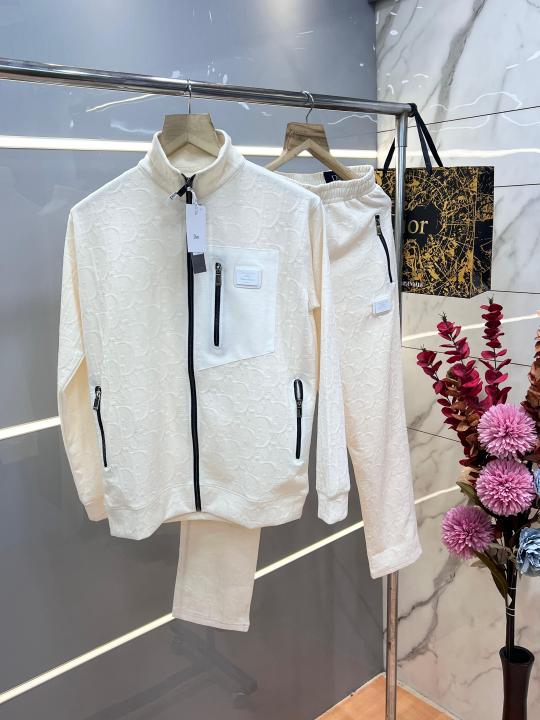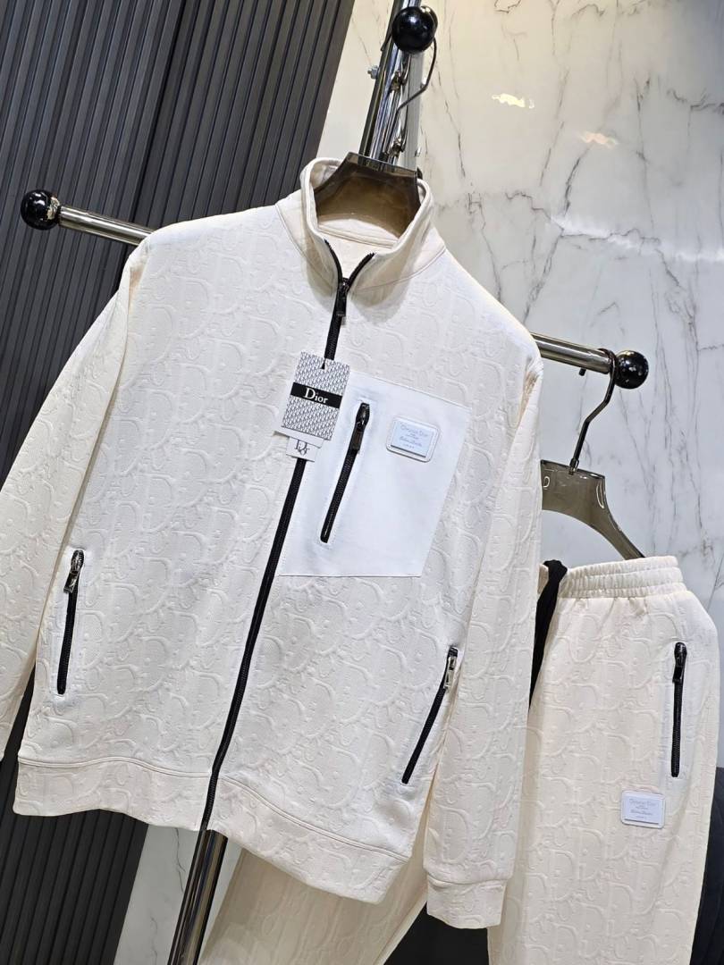 Christian Dio r Cream Monogram Design with Jacquard Fabric Premium Tracksuit with Carry Bag 3563