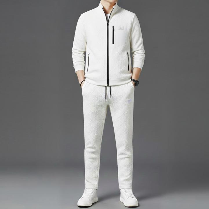 • Balmai n Paris White Imported Embossed Print Premium Track Suit Brand Carry Bag Packing F3143-WH