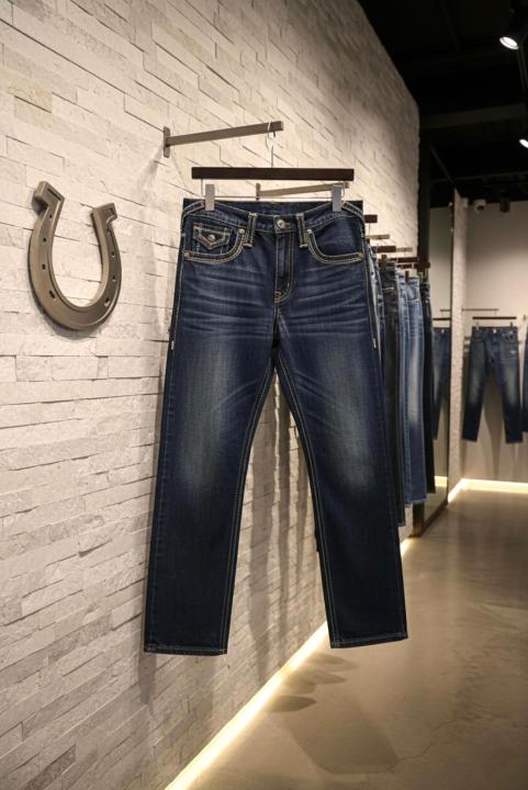 True Religio n Dark Shade Premium Imported Stretchable Lycra Fabric Boot Cut Denim with Back Flap pocket Design 3487