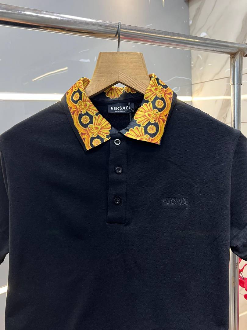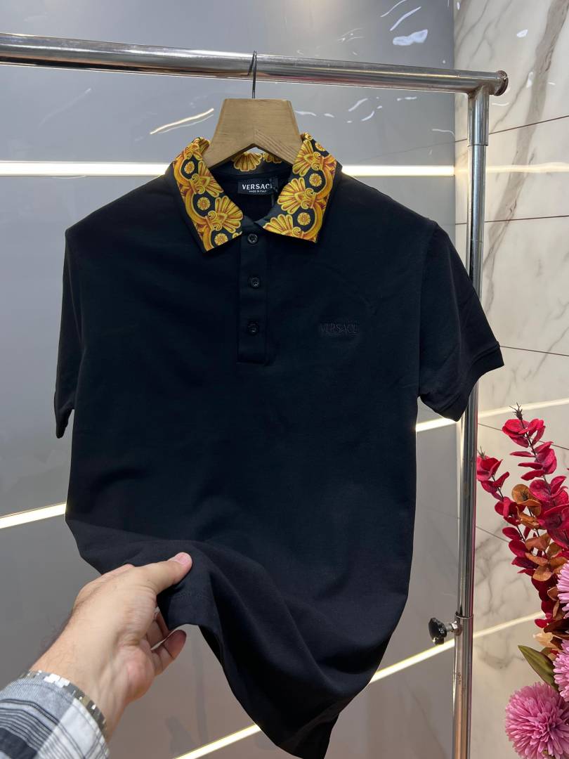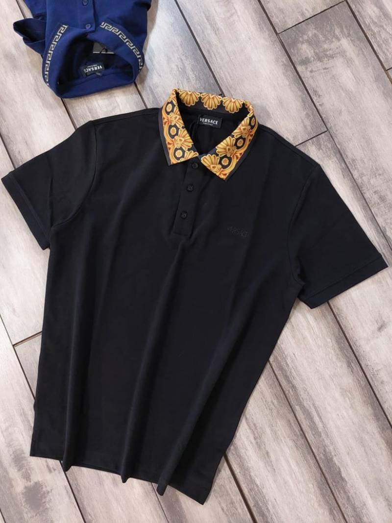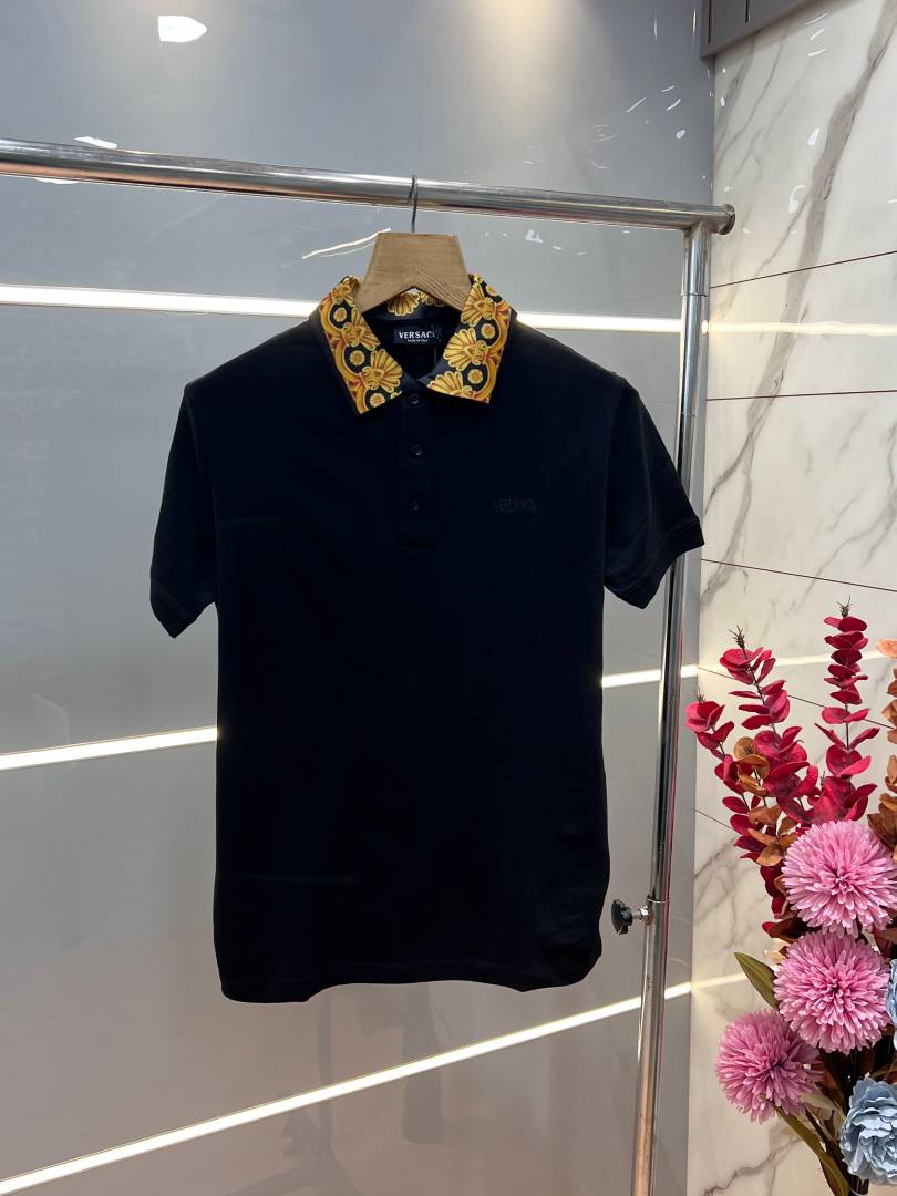 Versac e Black Premium Cotton Pique fabric Polo Tshirt with Collar Design and Embroidered Logo 3524