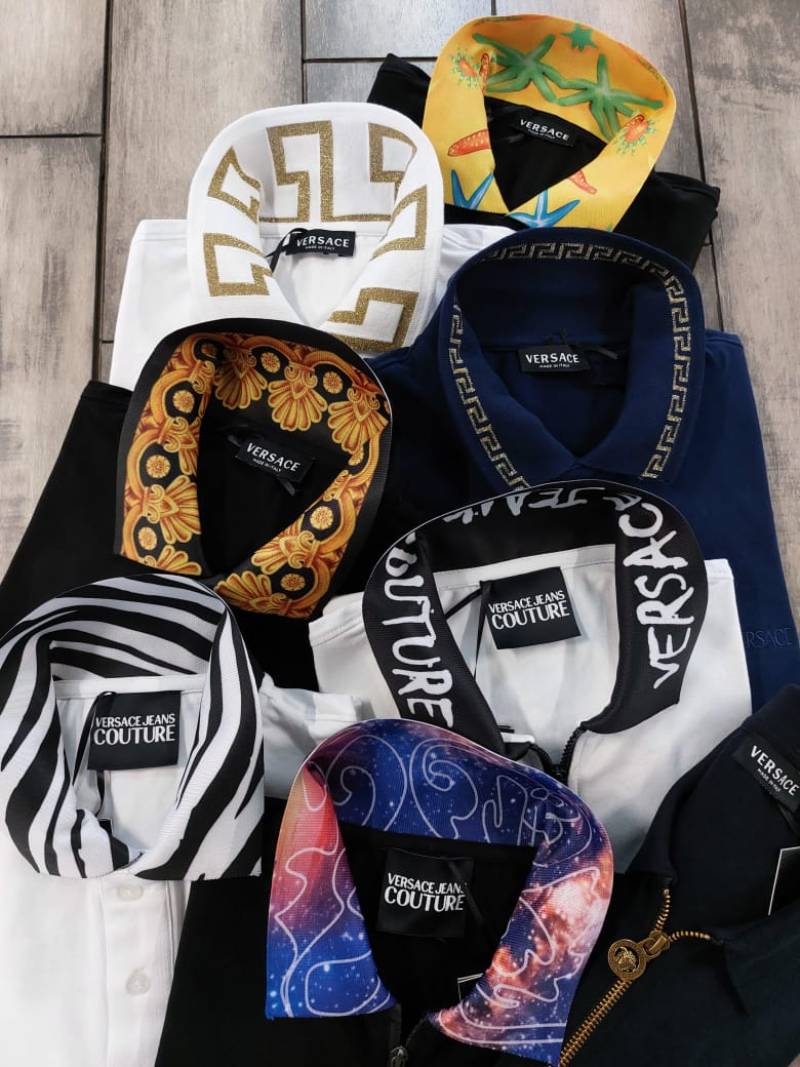 Versac e White Premium Cotton Pique fabric Polo Tshirt with Collar Design and Emboss Logo 3530