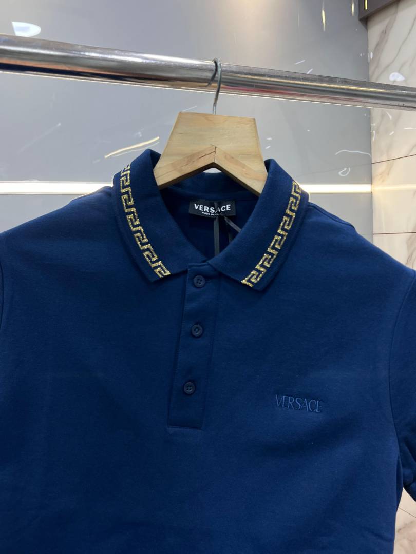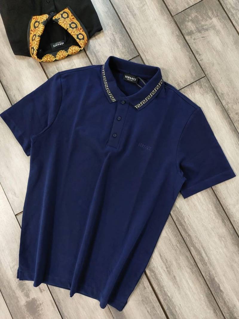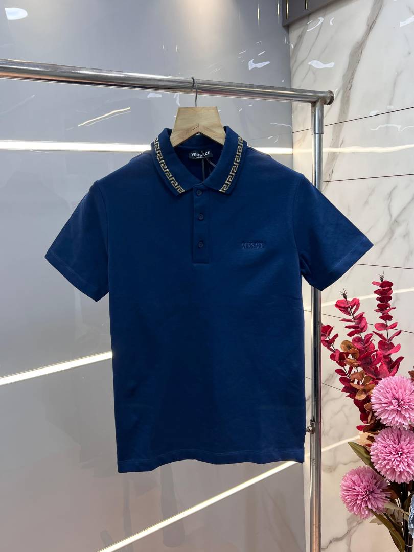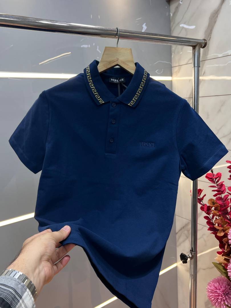 Versac e Inkblue Premium Cotton Pique fabric Polo Tshirt with Collar Design and Embroidered Logo 3525