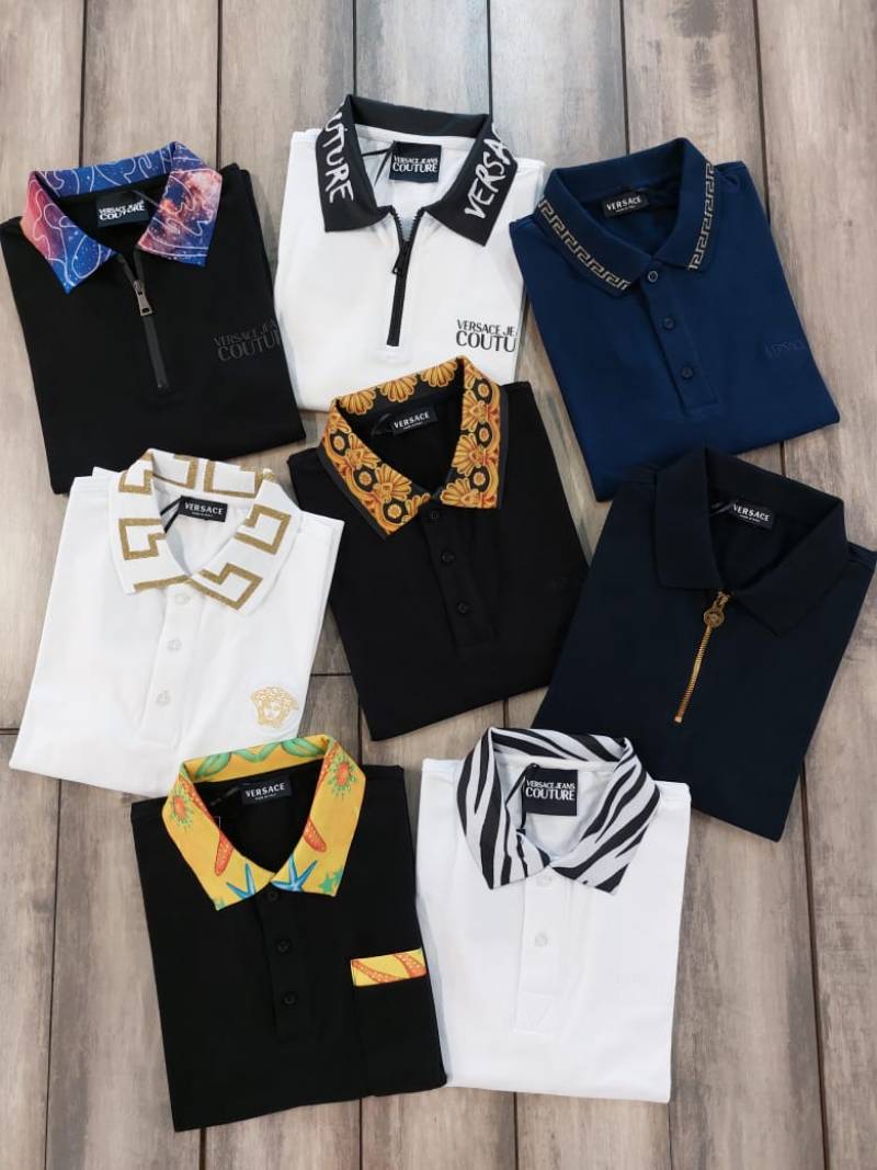 Versac e White Premium Cotton Pique fabric Polo Tshirt with Collar Design and Emboss Logo 3530
