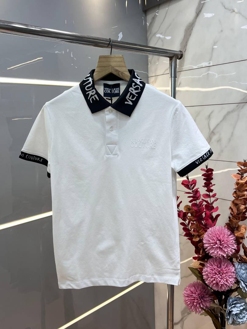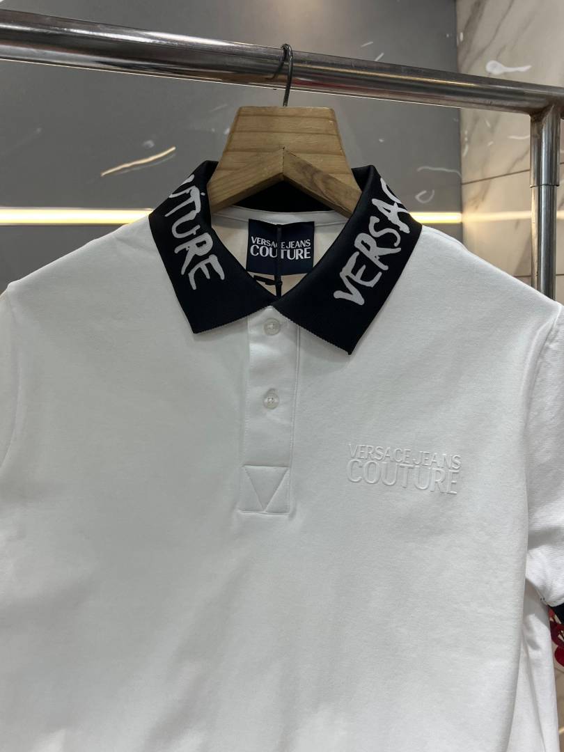 Versac e White Premium Cotton Pique fabric Polo Tshirt with Collar Design and Emboss Logo 3530